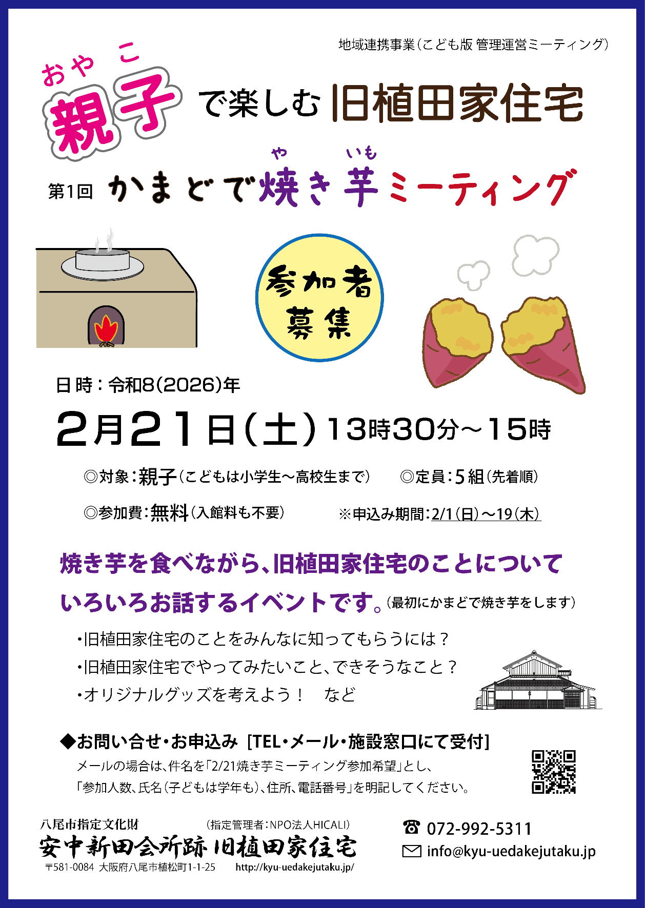 - 大阪府下にあった新田会所の多くは失われており、会所の建物と地を継承した旧植田家住宅は、江戸時代の集落の成立とともに高く評価され、現在の歴史景観からみても貴重な建造物といえます。