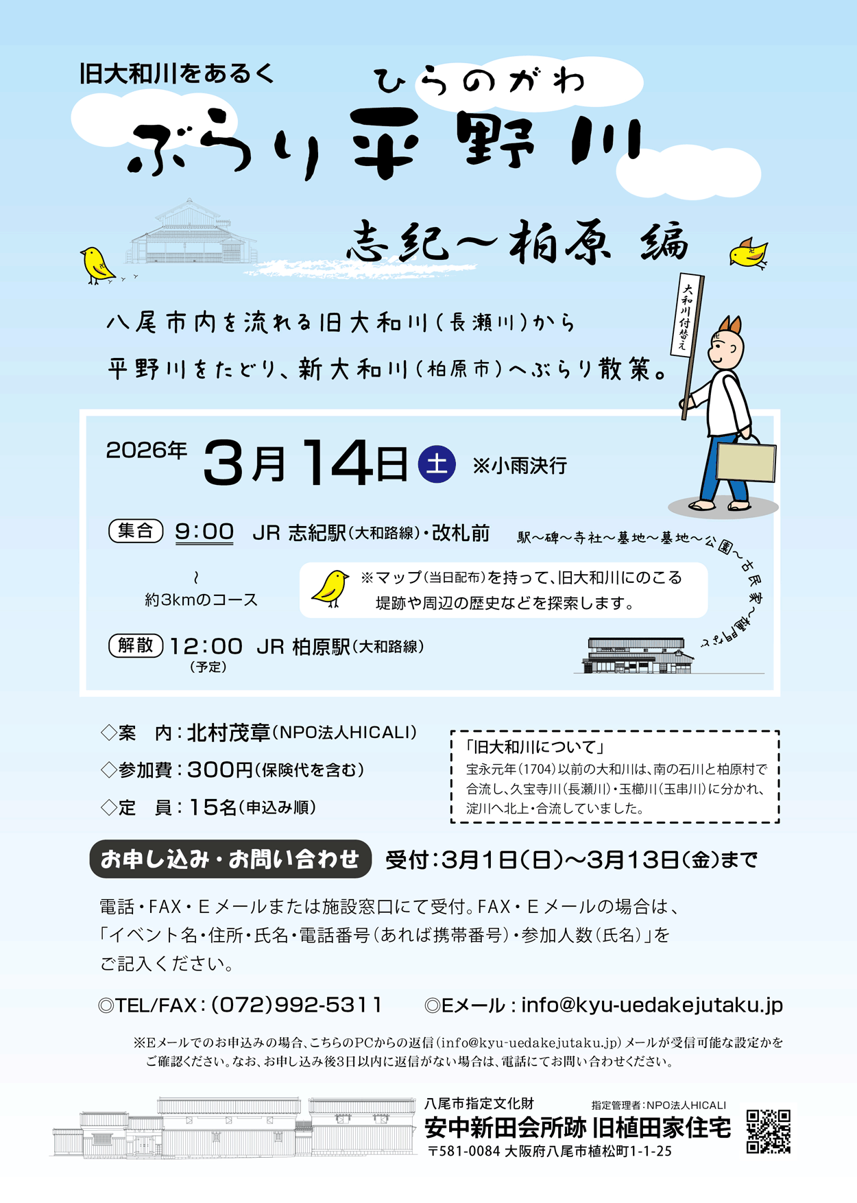 - 旧植田家住宅は、旧大和川主流である長瀬川左岸(旧大和川の左岸)にあり、宝永元年(1704)の大和川付替えによって開発された「安中新田」の会所(屋敷)の地を継承したものです。